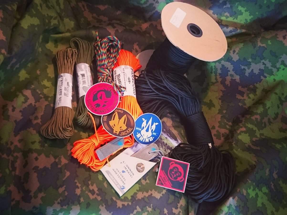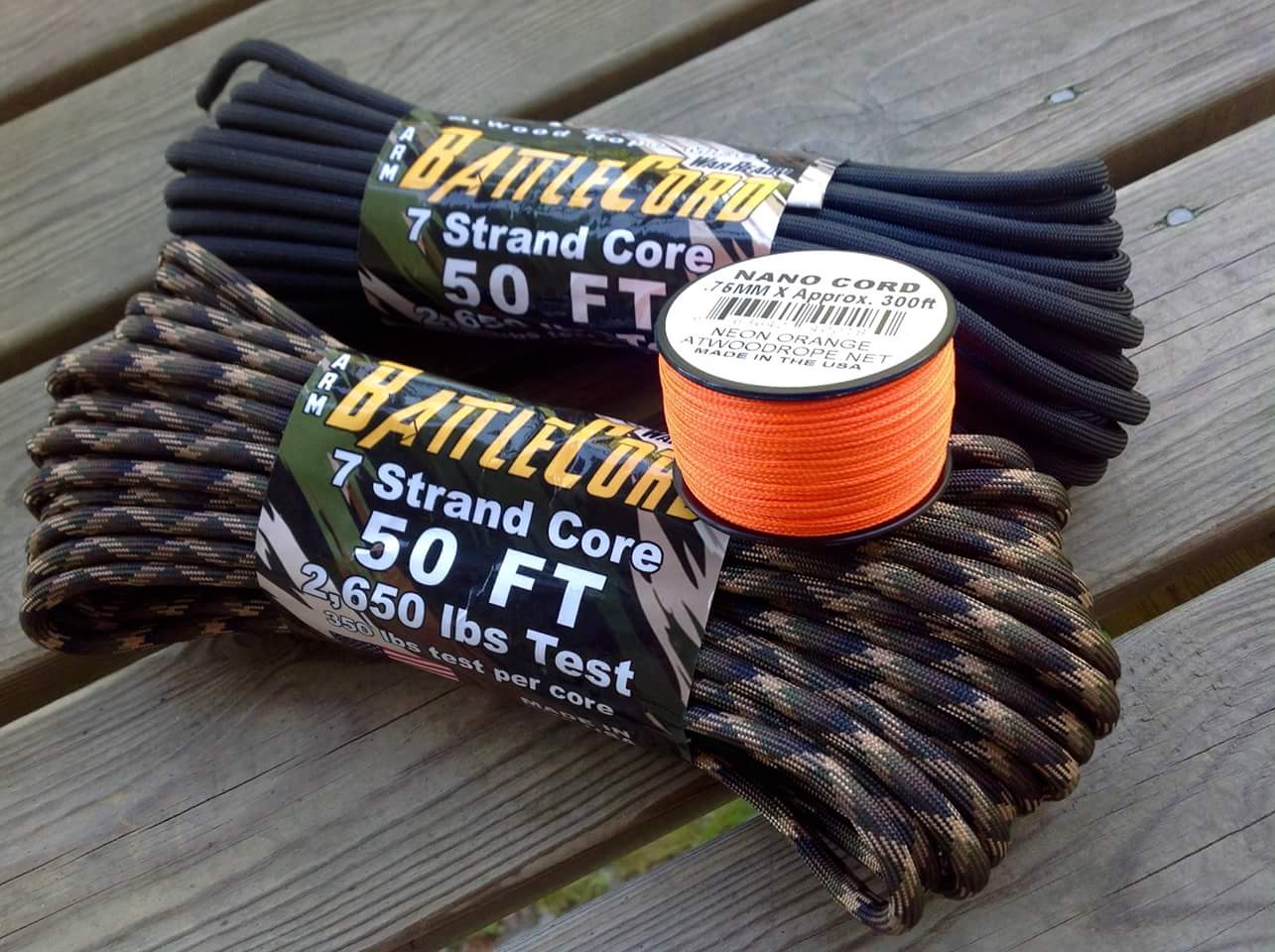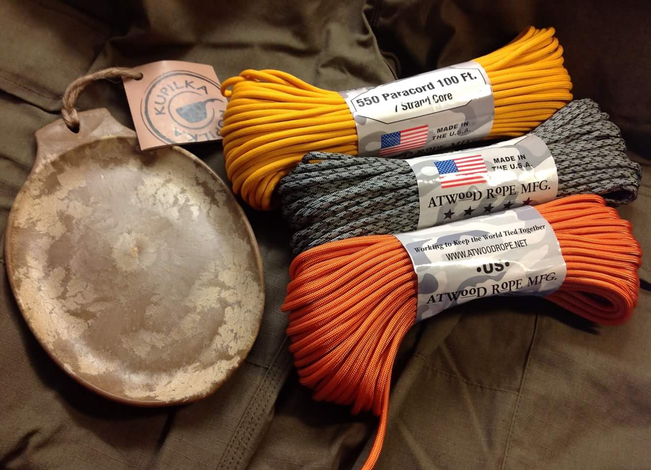 Many colours of Paracord (type I, type III), Tactical Paracord and Firecord.